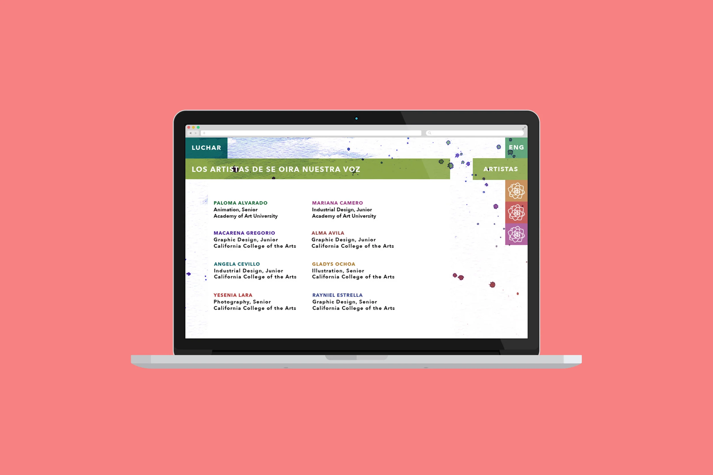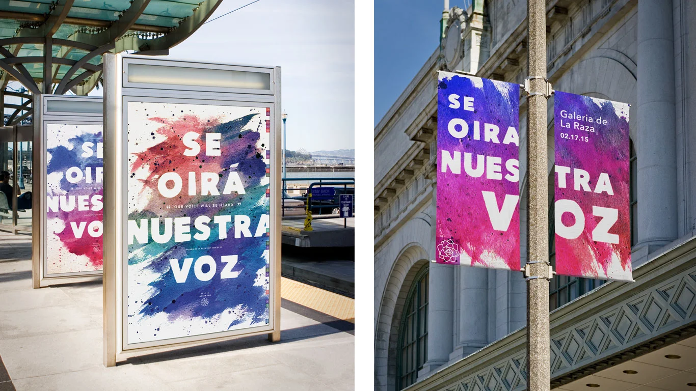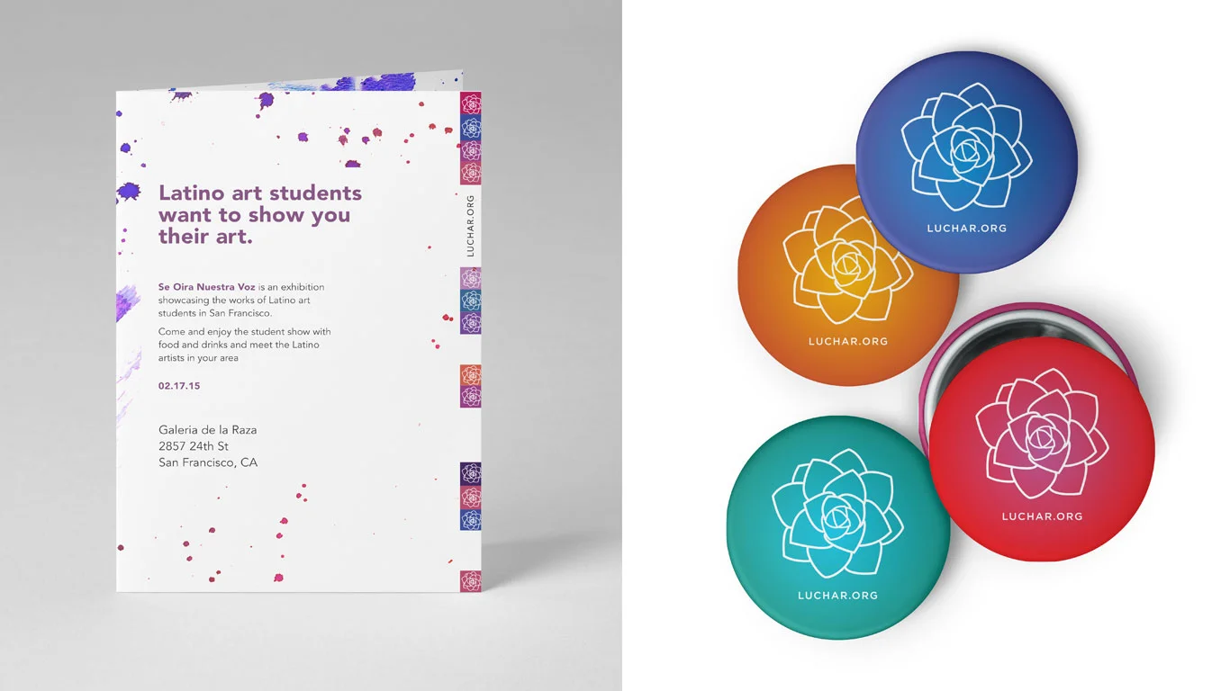 I created the identity for an exhibition highlighting Latino art students of San Francisco. The problem was creating a visual identity for Latinos in general because Latino art doesn't just have a specific look. Latinos come from a variety of different backgrounds which reflects in their art. My approach was to highlight the art making and I chose to represent that by using watercolor brush strokes. "Se oira nuestra voz" translates to "Our voice will be heard".